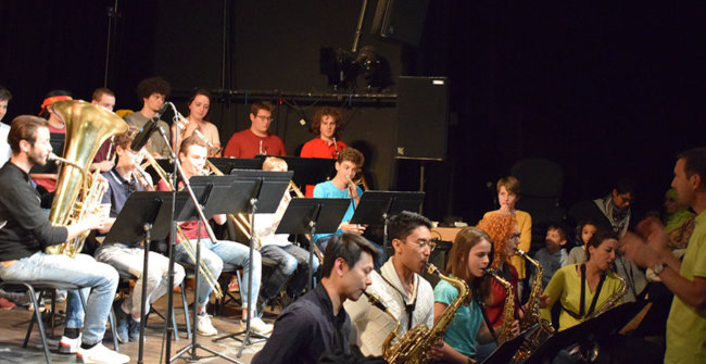 Cet ensemble est composé en partie d’élèves de 2e cycle du département classique et de 2e cycle du département jazz. Dans l’apprentissage du Jazz, la pratique en grand orchestre est primordiale. A l’origine, ces grandes formations étaient destinées à faire danser. Lieu où l’on se rencontre, c’est l’atelier idéal pour apprendre l’équilibre entre l’écrit et l’improvisation, comprendre comment participer à la dynamique et l’équilibre d’un groupe. C’est aussi une formidable école de la rigueur rythmique, du phrasé et de la tradition, le tout dans une atmosphère ludique et chaleureuse !