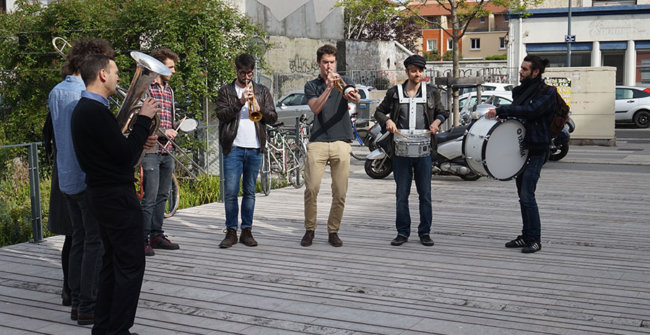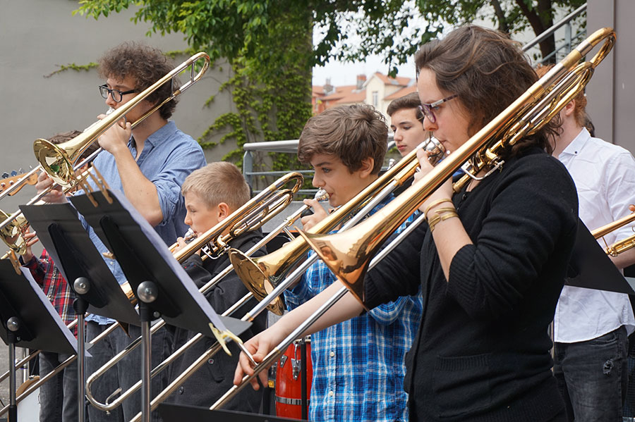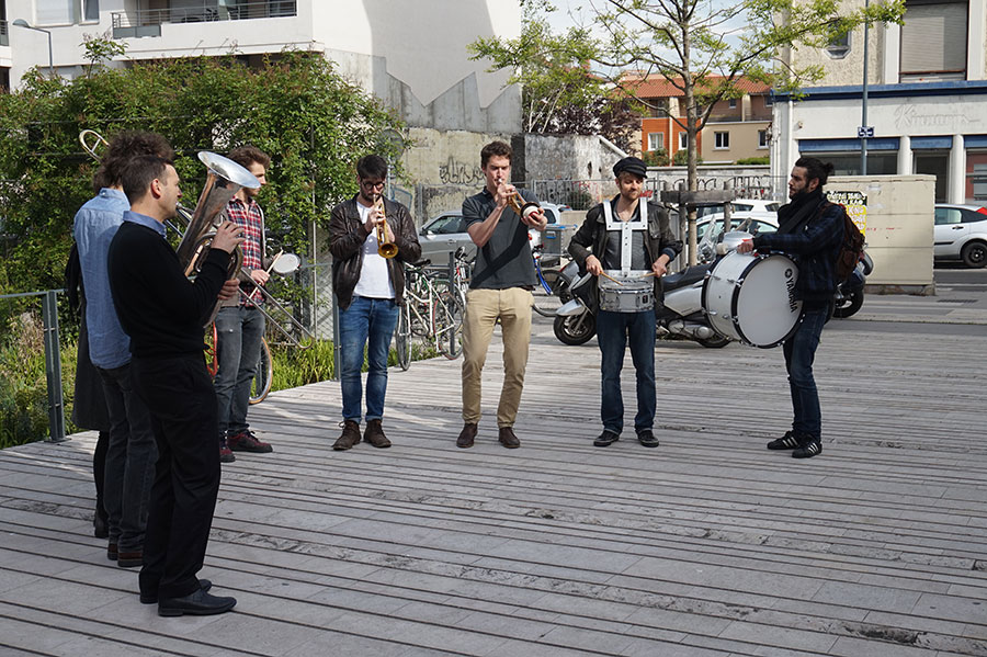 Cet atelier permet de revisiter les titres des débuts du Jazz (New Orleans, Dixieland …) au moyen d’une pédagogie basée uniquement sur l’oralité. Il se chargera de l’accueil du public sur la placette et proposera une déambulation, à la manière des Brass Bands de la Nouvelle Orleans, avant d’inviter le public à la danse sur la terrasse.