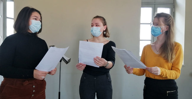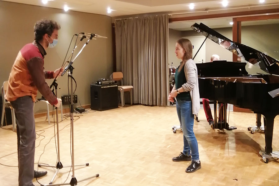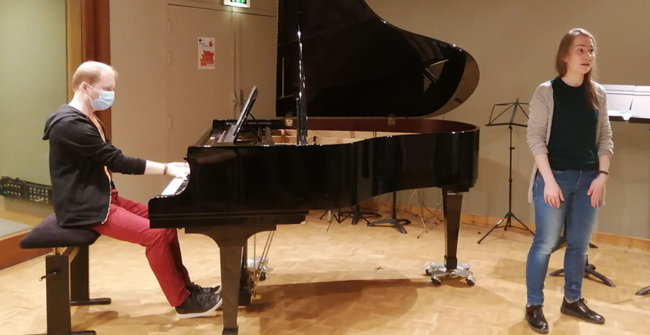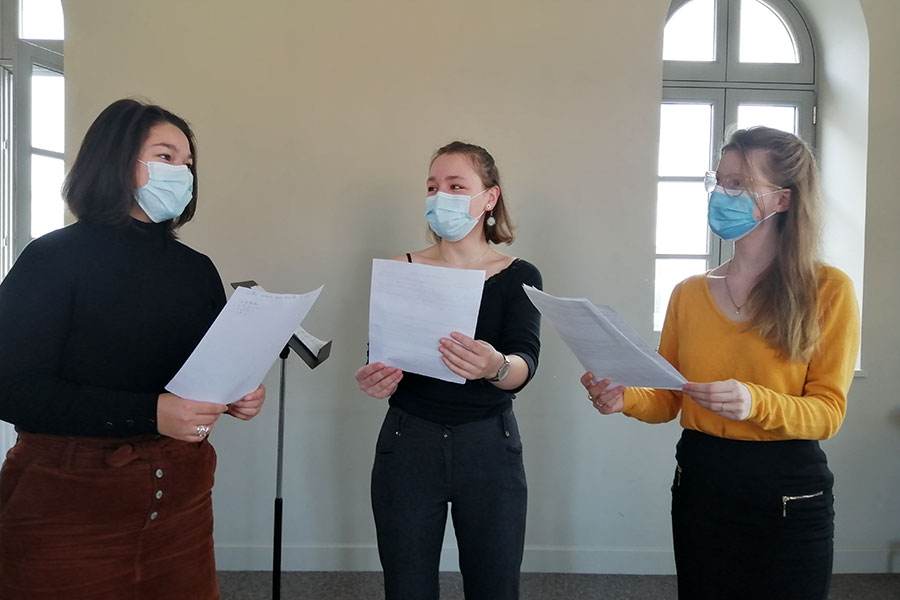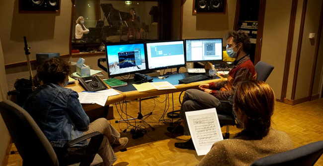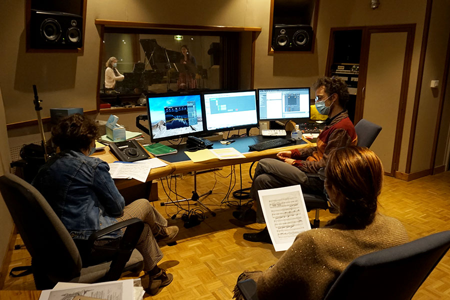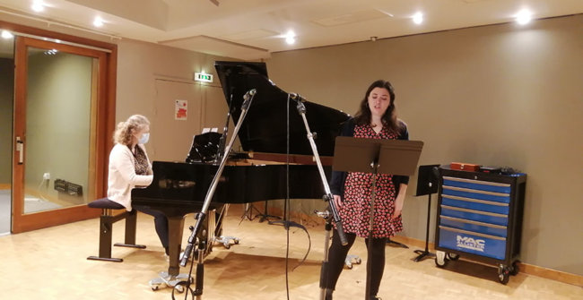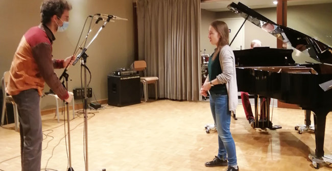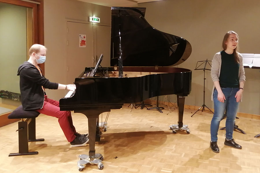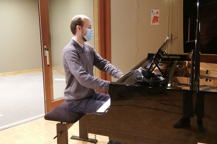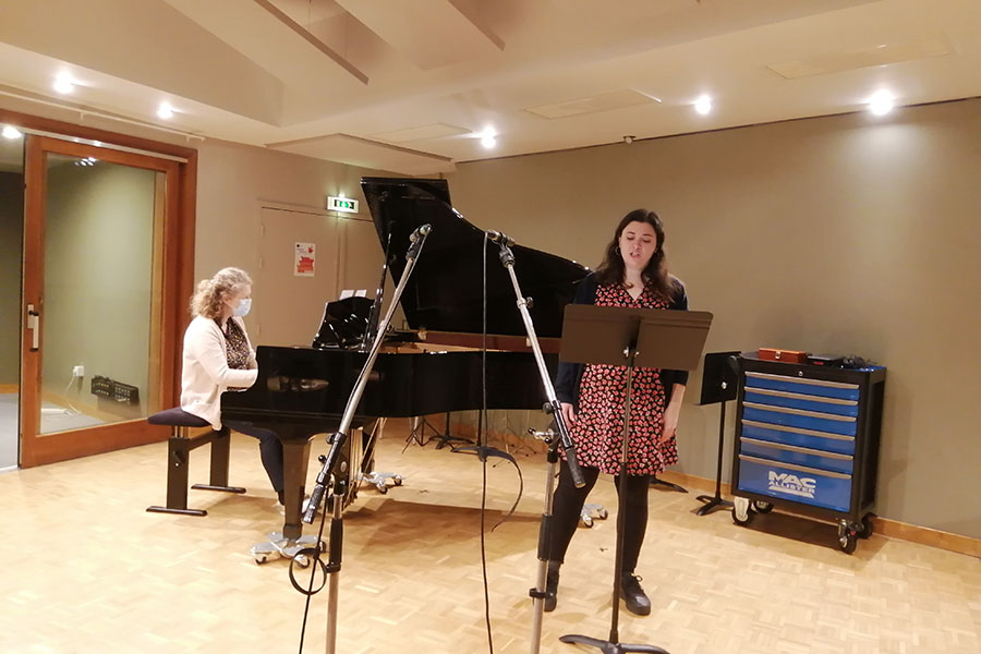 Dans ce contexte sanitaire très particulier, le projet artistique de l’ENM a dû évoluer pour aboutir à cette version audio. Tous les élèves prévus initialement ont participé, mais, pour certains, les contraintes ont été plus fortes. En effet, depuis le mois d’octobre, une partie des élèves de l’ENM n’a pas accès à l’école et ne bénéficie que de cours individuels à distance. En conséquence, la rencontre réelle entre chanteurs.ses et pianistes n’a pas pu se faire pour eux et les prises de son ont alors été réalisées séparément, et assemblées ensuite au studio de l’ENM. Le concept de l’émission de radio était bien présent dès le début, mais il s’est révélé indispensable puisque la rencontre avec le public n’était plus possible. S’il est toujours intéressant et nécessaire pour les élèves d’apprendre à s’adapter (à un lieu, à un public, à un contexte…), nous espérons des jours plus propices au travail artistique collectif qui cimentent tous nos projets pédagogiques.