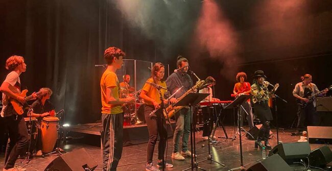 Vous avez pu retrouver les élèves et les professeur·e·s en dehors de l’ENM lors de l’ouverture du festival Les Reflets du Cinéma Ibérique et Latino-américain et au bus de l’Escale solidaire devant la Mairie de Villeurbanne.