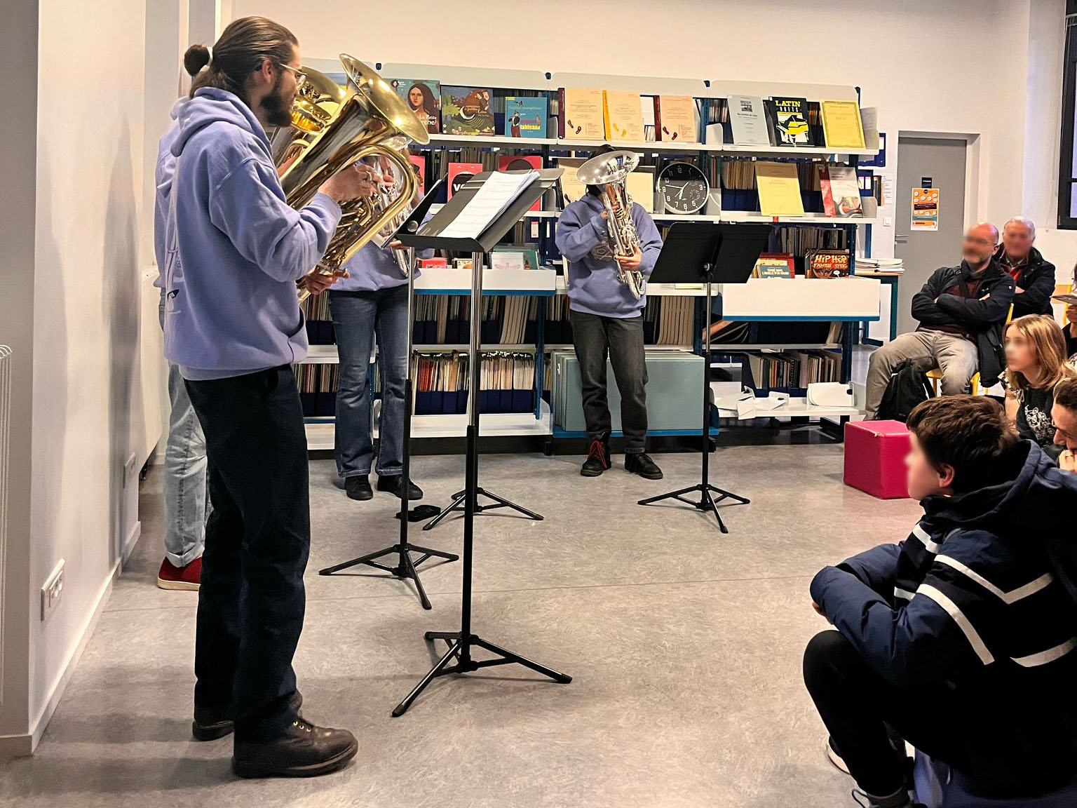 Les spectateur·rice·s étaient au rendez-vous, tant pour les ateliers (circle song et initiations d’instruments), pour la première partie – les Concerts Intimistes, que pour la deuxième partie – les Grands Ensembles.
