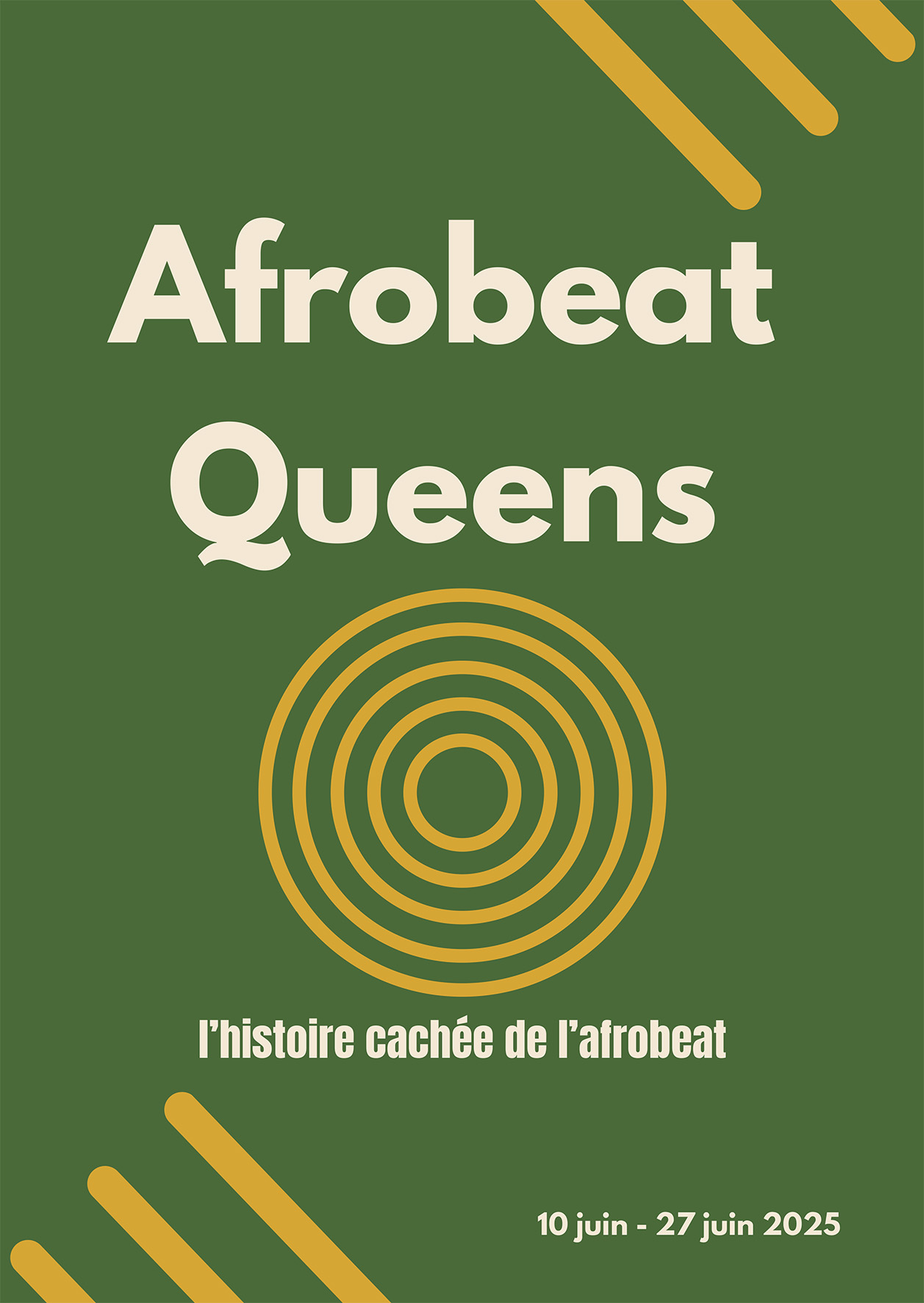 Venez découvrir l’exposition Afrobeat Queens, imaginée par deux élèves de l’ENM : Mathis Moriconi & Matthias Joannon, au Foyer Pollock du 10 au 27 juin.