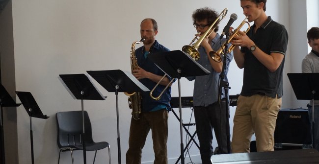 Élèves de 1er cycle danse (ENM, centres sociaux des Buers et du Tonkin) et de l’atelier AEM jazz de Vincent Martin